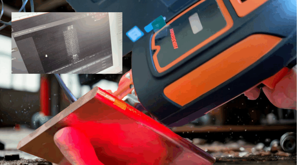 Matrix codes were also tested, but they did not deliver reliable readability across the full variety of copper slab geometries. The reflective copper surface made consistent reading difficult, especially when the available marking area was small or the code had to be placed on a curved or angled section. As a result, read rates were low and consistency was harder to maintain.