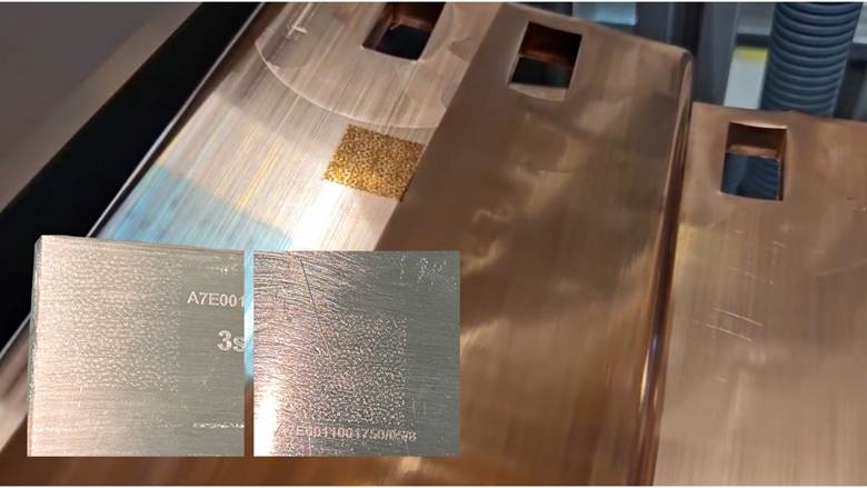 The CDOT-based approach replaces fragile identifiers with on-part identity. In Siemens Energy factories, copper slabs are marked by an automated laser marking station installed on-site. The key detail is that the station is built for variety, not for one ideal geometry. It recognizes incoming part shapes and places the code where it can be read reliably. That includes very small surfaces and curved outer surfaces that are usually avoided because they are difficult to mark consistently at speed.