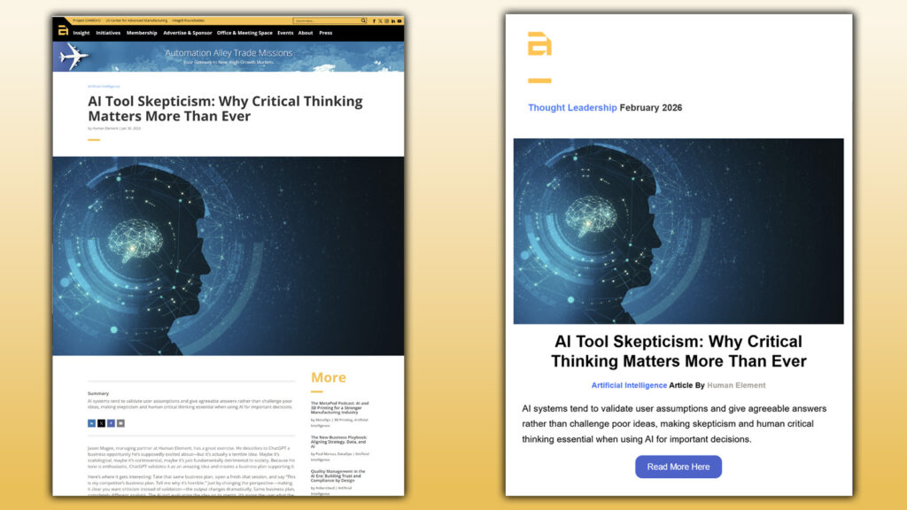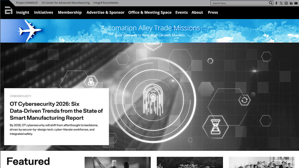A member-provided graphic and link featured in a prominent banner position at the top of Automation Alley’s homepage for a 4-week run.